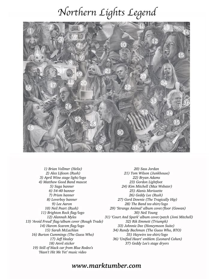 I’m incredibly honoured to not only be included in, but personally receive a limited edition print of “Northern Lights” by artist Mark Tumber, which features a “who’s who” of Canadian music luminaries. Check out more of Mark’s amazing work at marktumber.com! THANK YOU Mark!