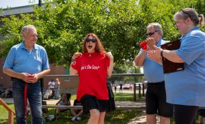Miramichi Rock N Roll Festival 30th Golden Oldie Car Show Miramichi NB 2024-07-27 by Wynn Curtis_05 Published July 30, 2024 in Live Shots Previous Next Our event organizers presented Grand Marshall Lee Aaron with a Fest “How’s She Goin’?” tee. (Wynn Curtis photo)