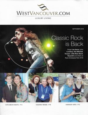 West Vancouver Living magazine cover Sep 2018 Lee Aaron Rock Ambleside Park Published January 13, 2019 in Live Shots Previous Next Gracing the cover of West Vancouver magazine.